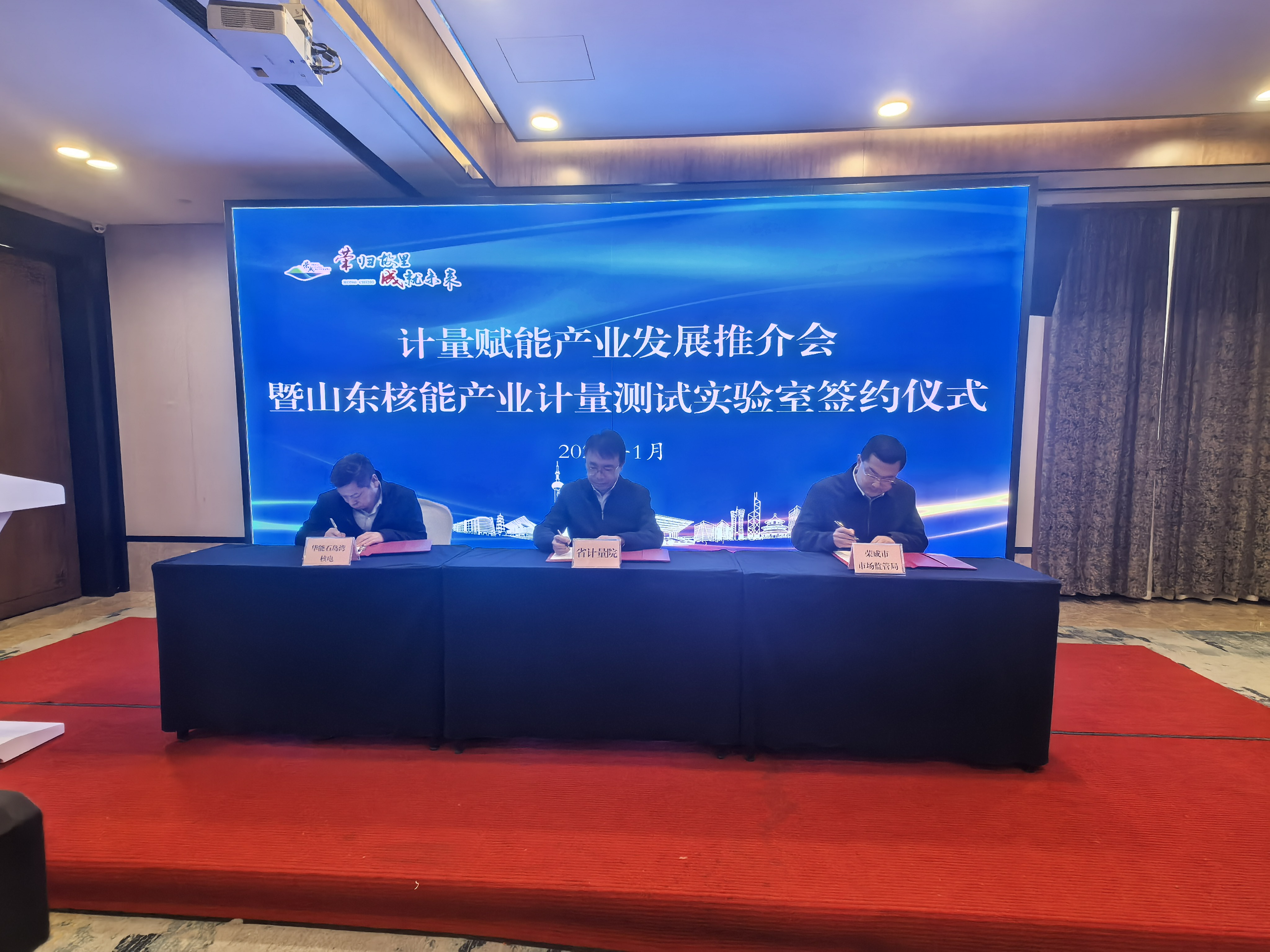 近日,山东省计量科学研究院、荣成市市场监督管理局与华能石岛湾核电有限公司在荣成签署合作协议,联合成立山东核能产业计量测试实验室。山东省计量院院长李文强、副院长郭波,威海市市场监管局三级调研员王萍华,荣成市市场监管局局长毕文状,华能山东石岛湾核电有限公司副总经理、党委委员陈立强等出席签约活动,50余家核能企业代表参会。